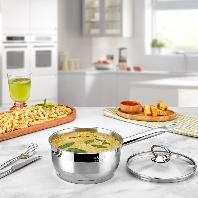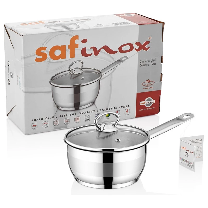 - LATEST TECHNOLOGY: Precision engineered 304 quality 18/10 mirror finished Stainless Steel with thermo capsulated bottom. The Safinox Stainless Steel Sauce Pan is made in Turkey with the highest quality stainless steel.