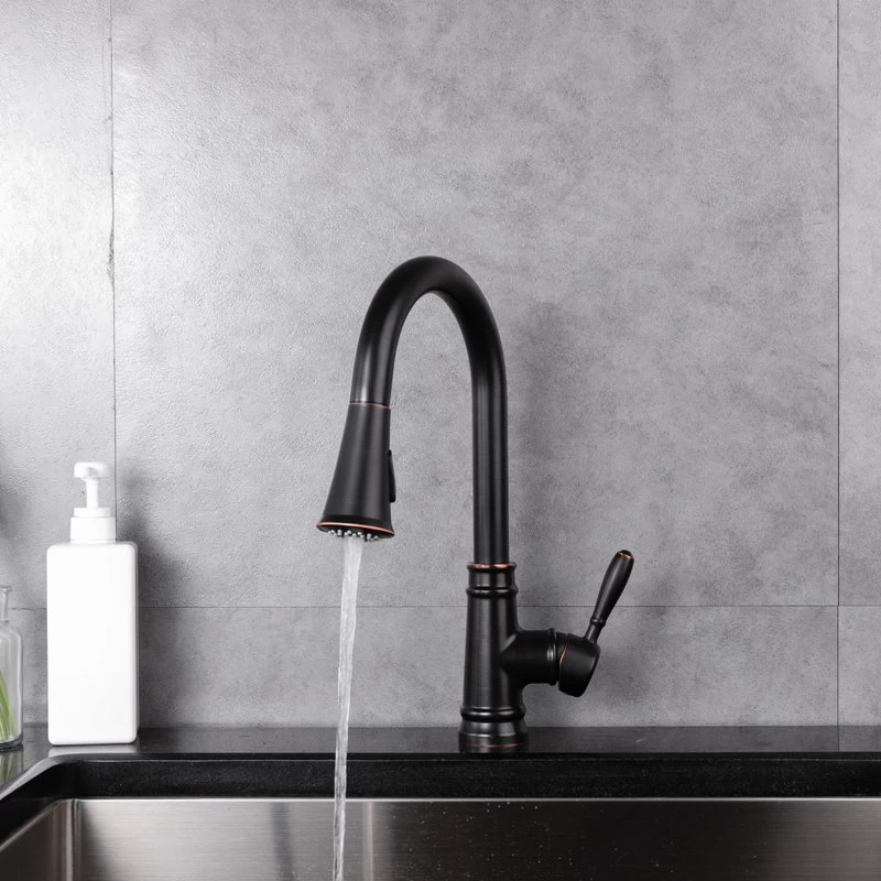 - Single Hole Kitchen Faucet with Hot and Cold Lever