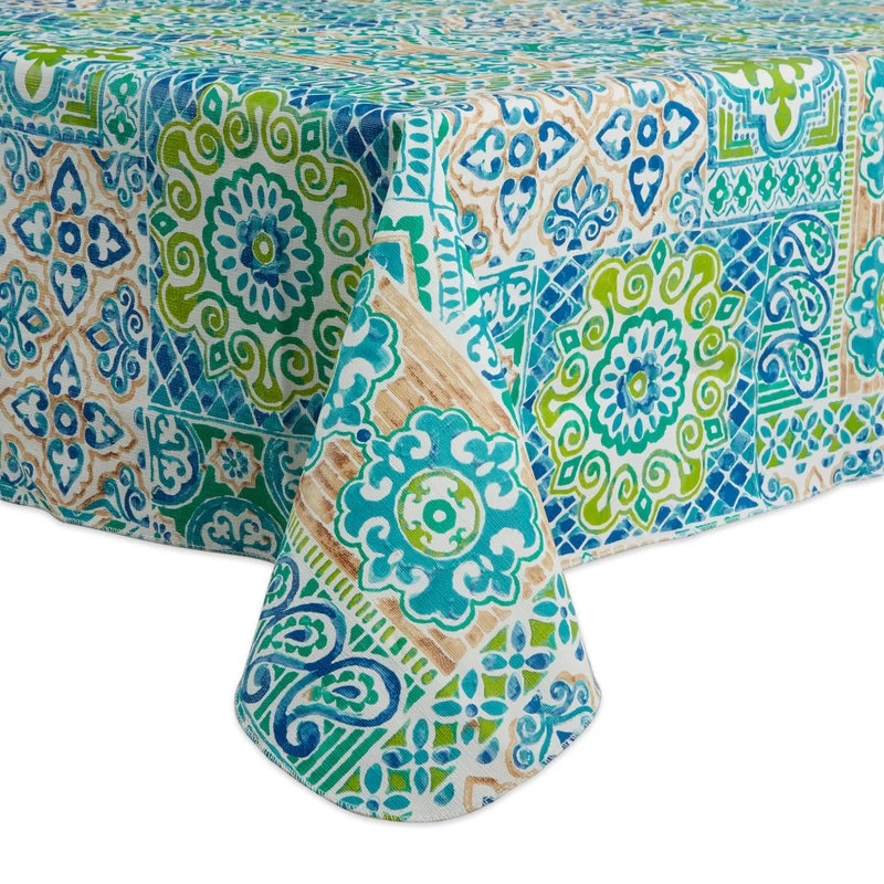 Spanish Tile Vinyl Tablecloth 70″R, 60×102″