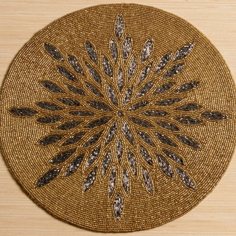 St. Croix 15″ Glass Beaded Sunburst Placemat, Gold And Gray