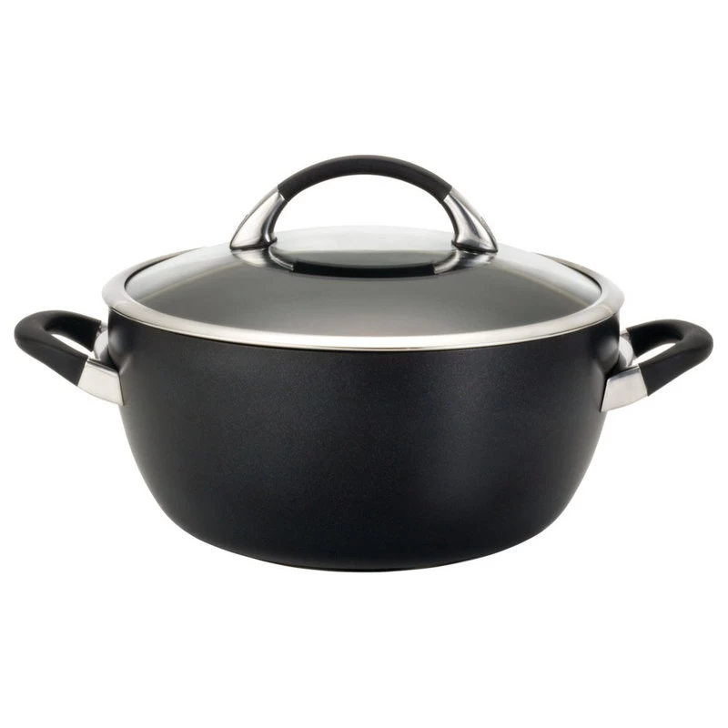 With this Circulon Symmetry Hard-Anodized Nonstick 5-1/2-Quart Covered Casserole and its top-quality nonstick technology, the durable nonstick cooking surface makes it easy to prepare favorite dishes without added oils and fats.Heavy-duty hard-anodized aluminum construction is twice as hard as stainless steel and provides lasting durability.