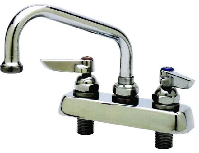 The T&S Brass B-1110 is a deck-mounted workboard faucet. It is a mixing faucet so it blends hot and cold water passing through its tube. The fusion of water can be controlled by two lever handles with color-coded indexes that make it easy to determine hot and cold water. It is corrosion-resistant because it has a chrome-plated brass body, making it last longer. This T&S Brass B-1110 Workboard Mixing Faucet features a 6-inch swing nozzle with a stream regulator outlet. It has 1/2-inch NPT male inlets. This faucet comes with compression spindles, removable brass seats, and a chrome-plated escutcheon. It also includes tailpieces and nuts for 1/4-inch NPT male connections. This faucet is easy to install and much easier to use. The T&S Brass B-1110 Workboard Mixing Faucet has a limited one-year warranty. It is certified by NSF and ASME for meeting the standards. For more details, you can refer to the specification sheet. T&S Brass provides high quality solutions for the food service, plumbing and institutional markets with exceptional customer service.