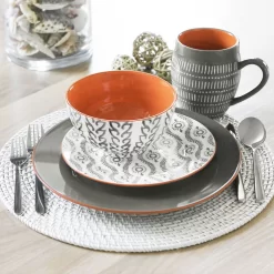 Tatiana Grey 16 Piece Dinnerware Set : Inspired by tile work patterns from Morocco, this set with its mixed patterns layers beautifully on top of a solid color dinner plate to give your table a little extra pop! This 16-piece Dinnerware Set includes: four dinner plates, four salad plates, four bowls, and four mugs.