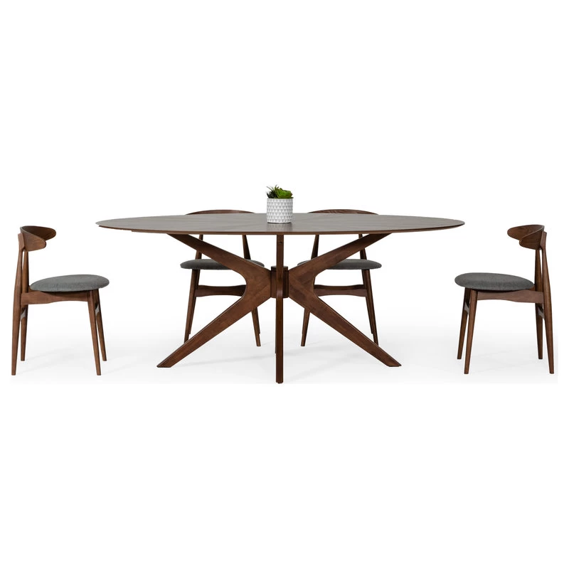 The Beck Dining Table, 75″, Walnut, Midcentury, Oval