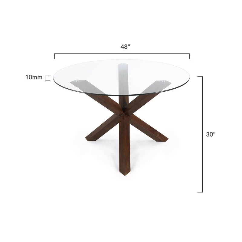 Timber takes the spotlight in this work of art that doubles as a dining table. The Kent’s 10mm glass top provides the perfect lens to admire its solid rubberwood base—three angled posts that lend an earthy, eye-catching aesthetic to any dining room. Plus, with seating for up to five, family meals and intimate gatherings are practically what it’s built for.