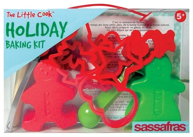 Our basic baking kits are perfect basics for the budding baker. The tools are sized for smaller hands and the recipe and instructions offer clear directions as well as a fun rhyme. Each comes packaged in a suitcase style box. Kit Includes: Measuring Spoons, 2 Gingerbread Silicone Cake Molds, 6 Cookie Cutters, Spatula, Wooden Rolling Pin and Recipe & Rhyme Booklet.