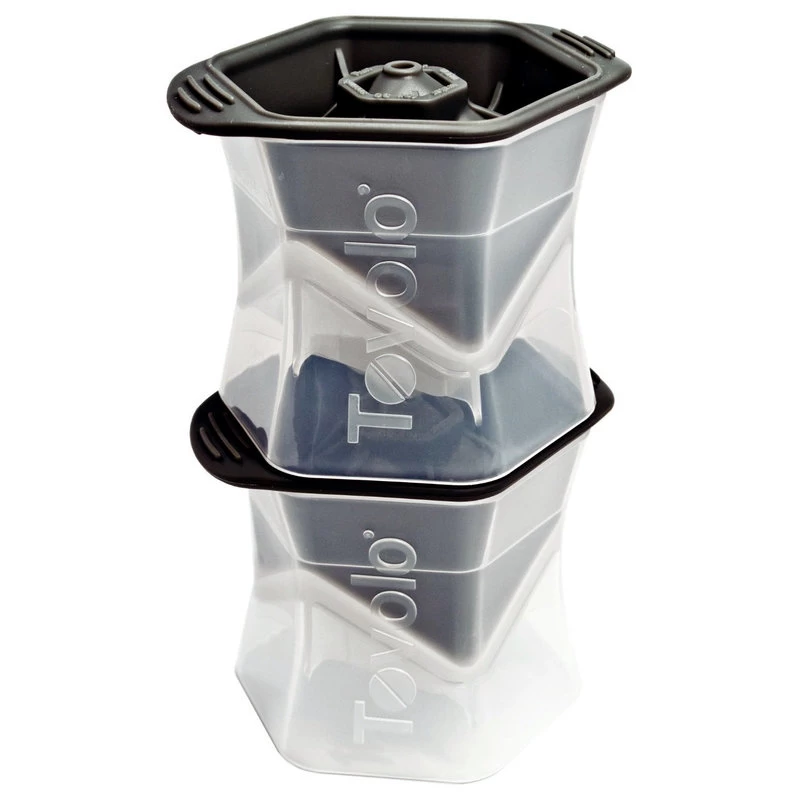 Keep your drinks cool, but not watered down, with ice cubes made with this Tovolo Colossal ice mold. Made from BPA free plastic and silicone, each ice tray creates one- two and a quarter inch ice cube which melts slower due to larger surface area, keeping your drinks cooler longer. The mold’s silicone lid creates a tight seal, making it leak proof. Its unique design allows each to stack on top of the other, conserving space and ensuring no tipping. The large ice cubes are perfect for keeping pitchers, beverage dispensers, and punch bowls cool. Dishwasher safe, this ice mold set can be used again and again.