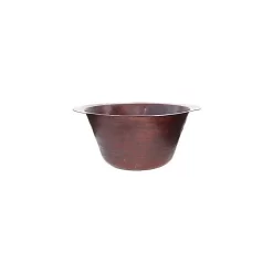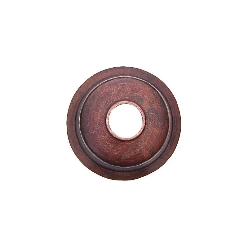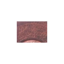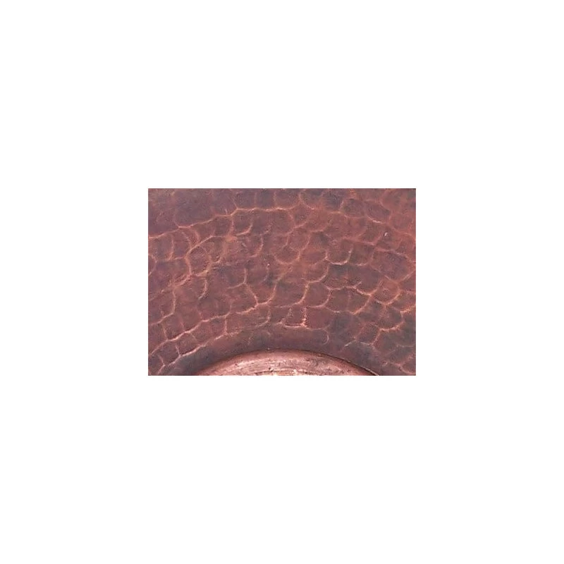 This round kitchen copper sink has a standard 3.75 diameter hole at the bottom center, it fits the 3.5″ diameter drainage size. The rim around it is about 1.5″, so the internal dimension is 15″ diameter x8″ depth. The copper sheet is 18 gauge (0.04″ thickness). The finish is in weathered copper, which is antique-looking. If scratched, it will heal by itself, if it does not, we have a way to repatinate it back!From a copper sheet the wise artisan hands transform it into this unique piece. It is designed to be either over-the-counter or undermounted because the rim is flat.This copper sink was made from one sheet of copper, raised with the artisan’s hammer, there are no welded joints.IMPORTANT NOTE: The patina can be damaged faster if abrasive substances are used to clean it, because of this, we recommend rinse it with water and soap only!”