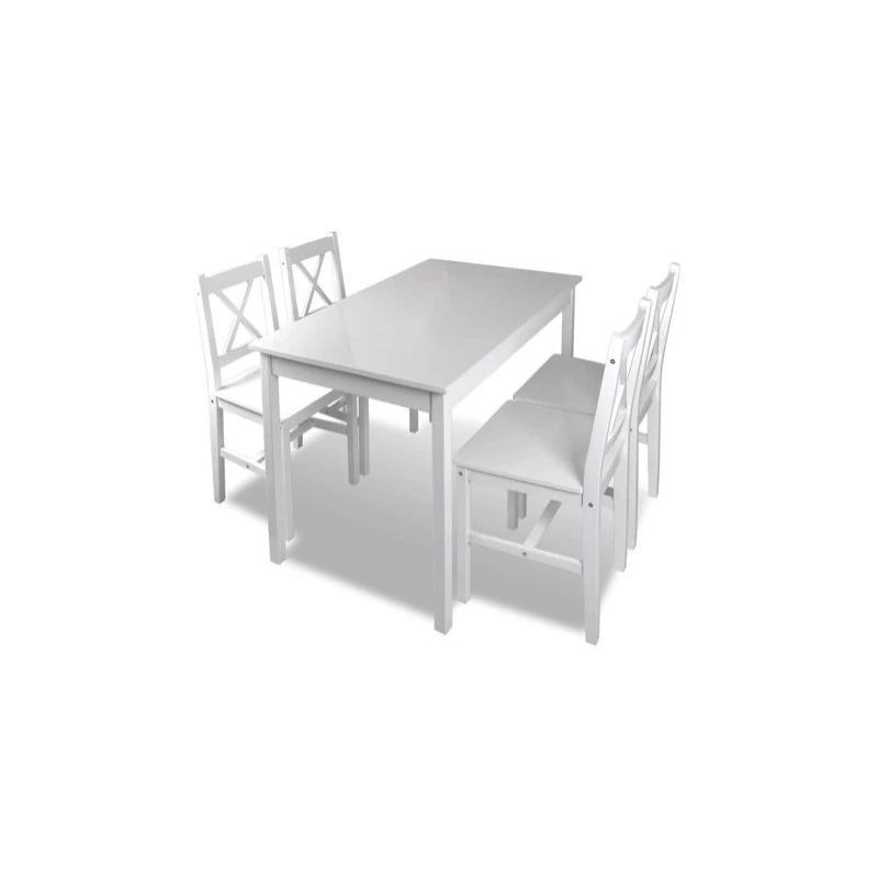 This 5 pcs dining table set, designed with clean and simple lines, is a great selection for your dining room or kitchen. The simple elegance of this dining set will make everyday dinner special. This dining table set is made from solid wood with an attractive stained finish for a classy appearance, which will definitely bring years of service. Delivery includes four chairs and a table.