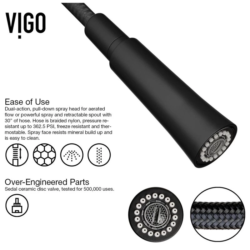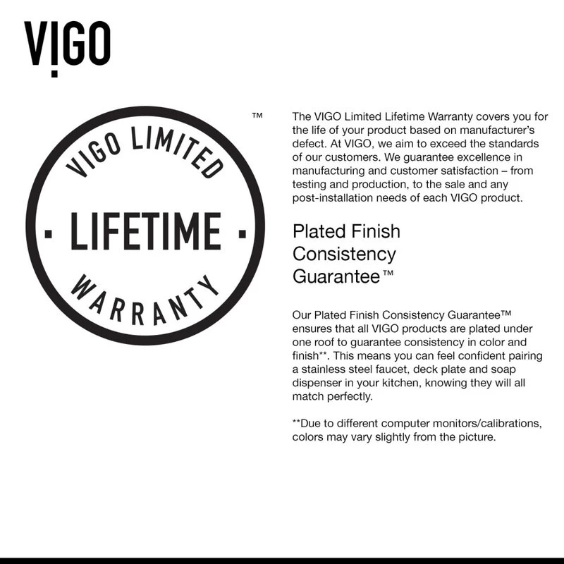 - All VIGO kitchen faucets are backed by a Limited Lifetime Warranty;