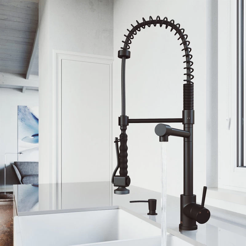Taking inspiration from commercial kitchens, The Zurich by VIGO delivers modern design and functionality. This kitchen faucet provides more power for cooking and cleaning. VIGO’s premium 7-layer finish adds an elegant touch to its industrial design. Loaded with features, The Zurich is engineered with an extendable pull-down sprayer head and a separate pot filler. Its solid brass construction delivers a lifetime of lasting durability while the single handle lever ensures seamless operation. Beautiful as it is practical, The Zurich is a must-have fixture for your home.