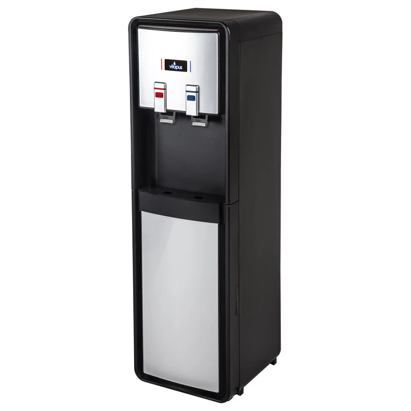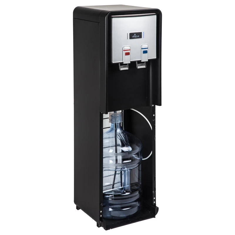 Save energy and money while enjoying great-tasting water with the Vitapur VWD1086BLS-PL bottom load water dispenser. This dispenser makes adding water easy, as the bottle is connected and stored in the bottom cabinet, instead of needing to be lifted on top.�The design accommodates 3, 4 or 5 gallon water bottles.� It also features easy-to-use push levers and dispenses your choice of hot or cold temperature water.�Convenient LED lights indicate when water has cooled or heated to optimum temperature conditions and with 24/7 heating, you always have hot water readily available.� This sleek design will compliment any home or office.