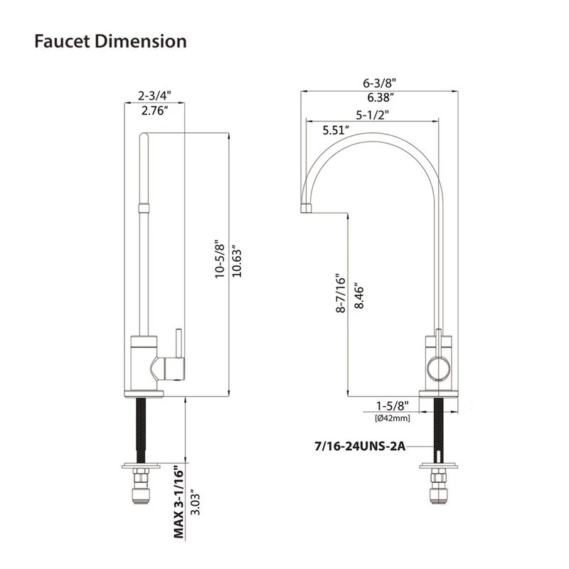 2. Connection: No hose included, mounting hardware is included. please check before buying the water faucet whether can connect to your under-sink RO system or water filtration System or not. 100% high-pressure test before package, No Leak. No Drip No Air Gap drinking water faucet.