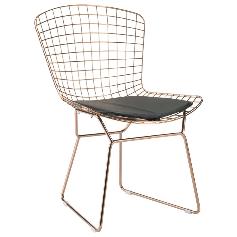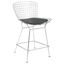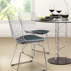 An icon of Mid-Century modern, the Wire dining chair comes in three finishes: chrome, matte black, or matte white; as well as in two heights: dining and bar. It is made of a welded solid steel frame with six cushion color options: black, white, red, orange, green, grey, and espresso. Sold separately.