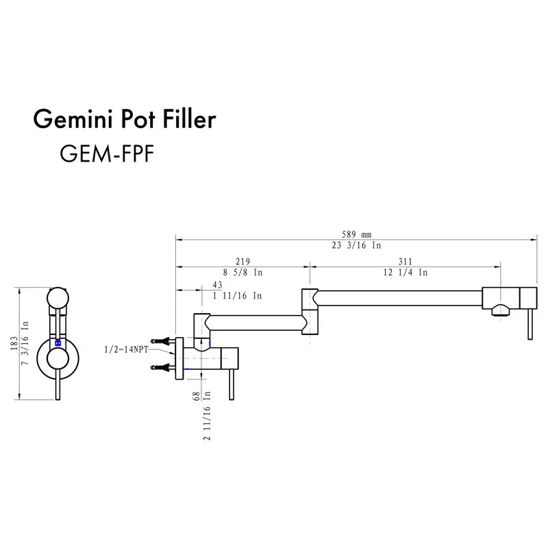 SKU: GEM-FPF-MB Categories: Kitchen Fixtures, Pot Fillers Tags: Brushed nickel, Champagne Bronze, Chrome, Faucet, Kitchen faucet, Matte black, Polished gold, Pot filler, ZLINE Kitchen and Bath